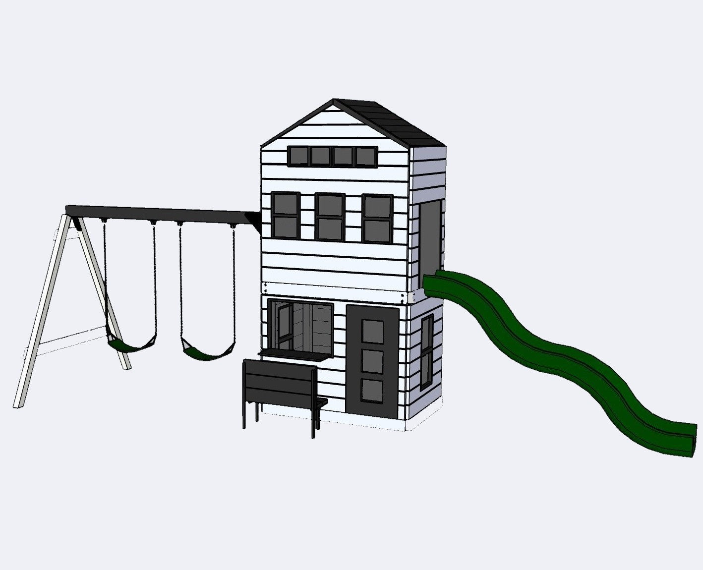 Need to make changes to an existing swing set design? Playkids offers Free 3D renderings for any playground listing. Give us a call or email us with the changes you would like to see, and within 48 hours you will get a 3D rendering. No need to imagine what your playground will look like... let us bring your imagination to life!