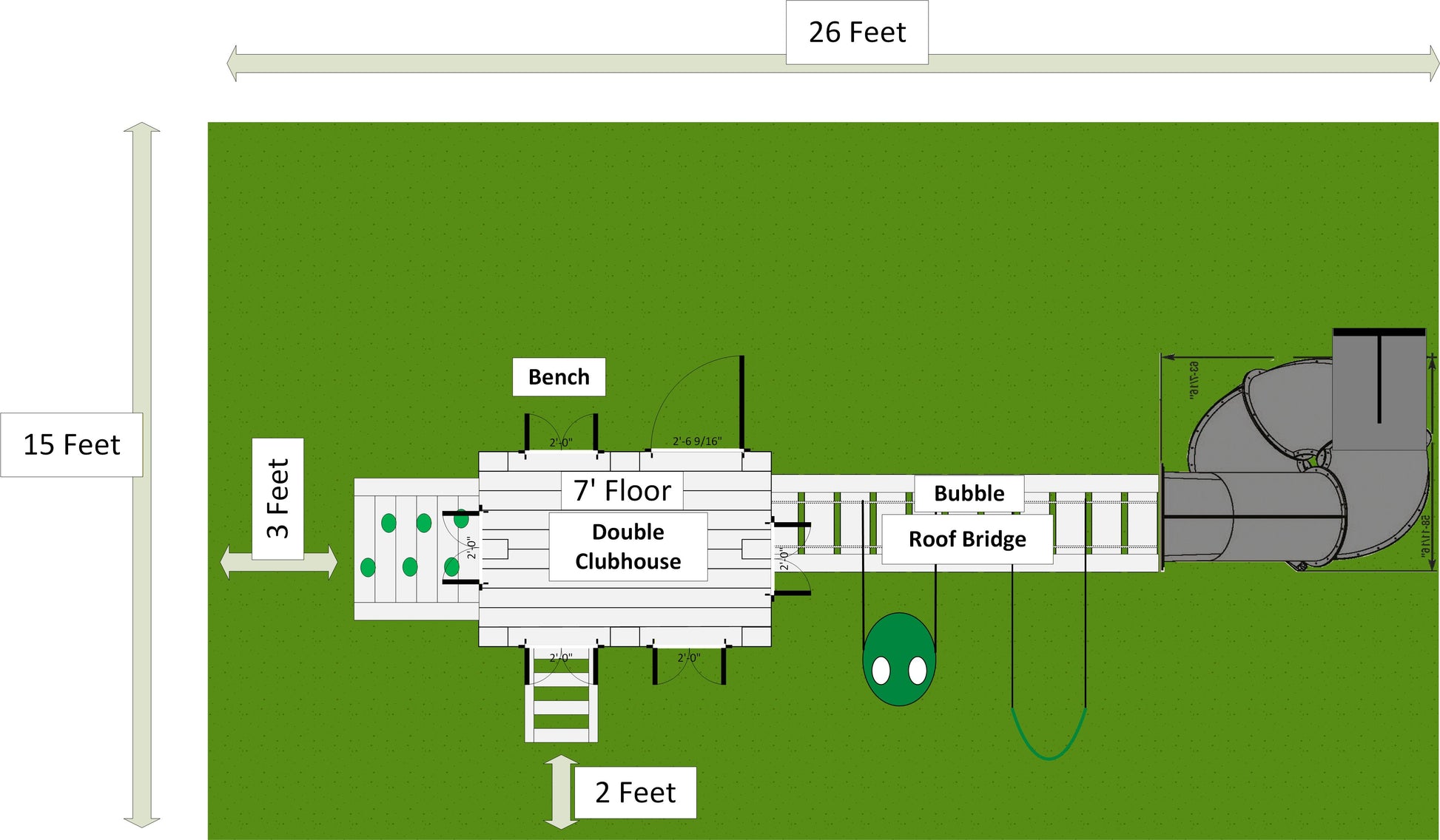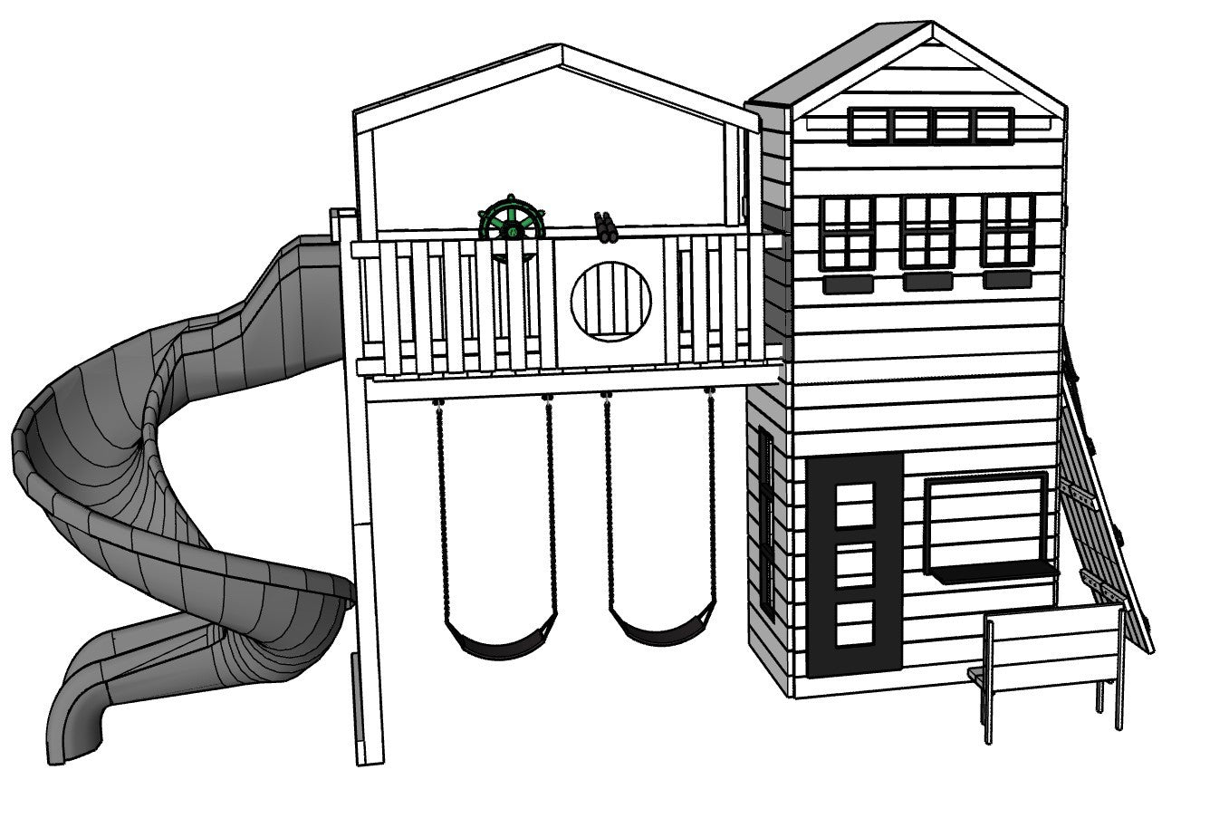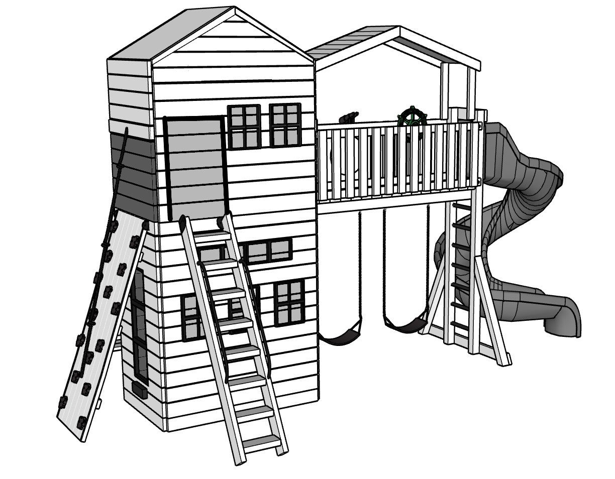 - Choice of 2 Swings: Bucket, Belt, Trapeze, Horse Glider