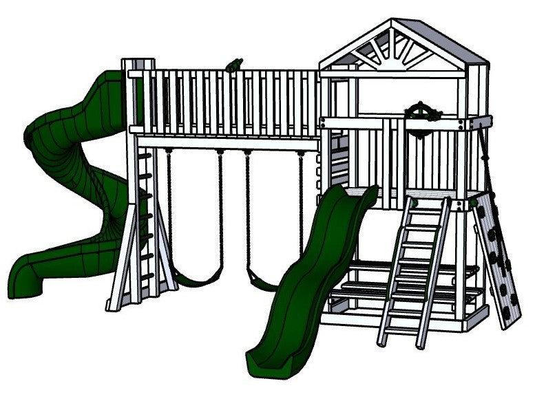 - Choice of 2 Swings: Bucket, Belt, Trapeze, Horse Glider