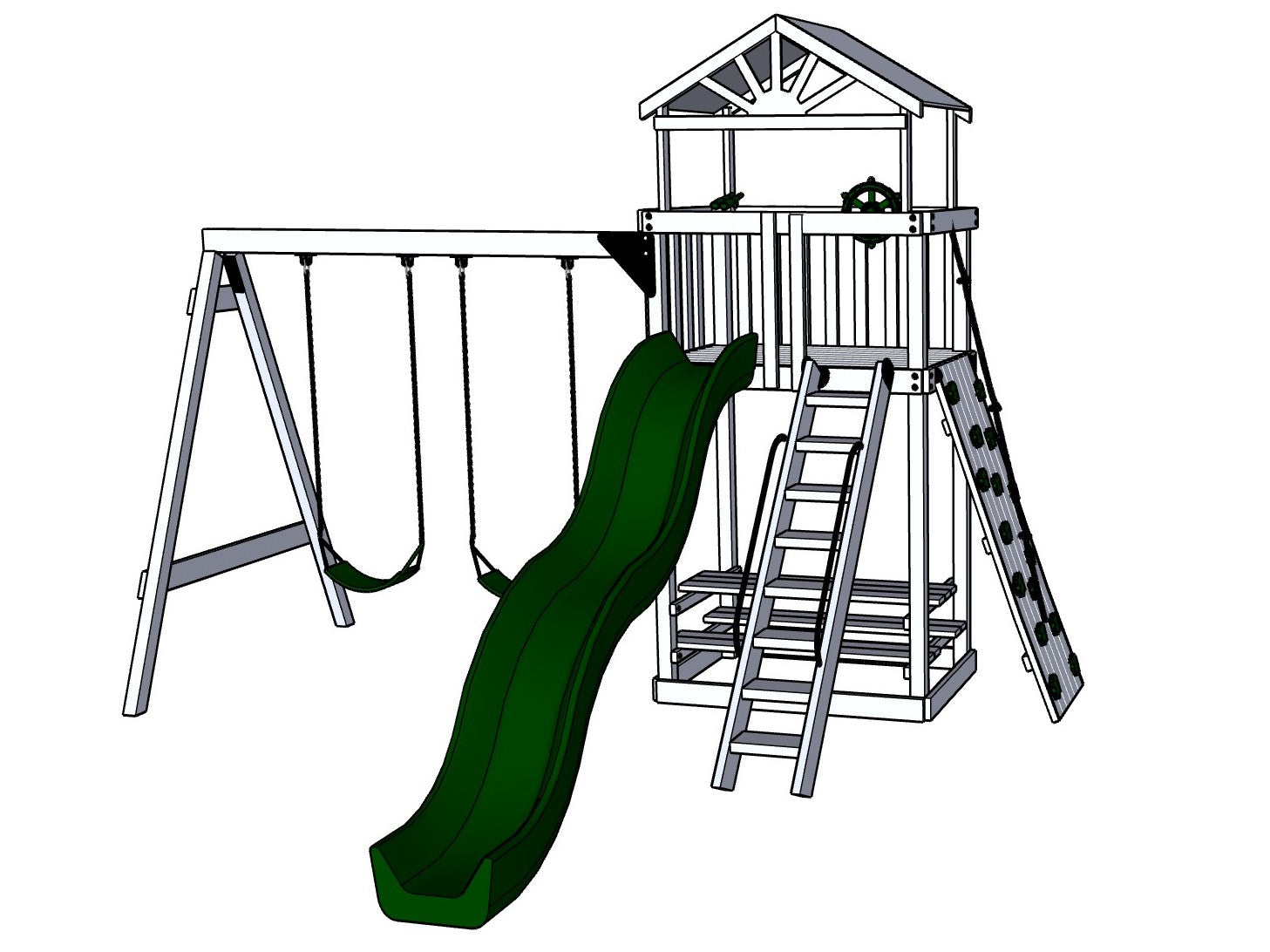 - Choice of 2 Swings: Bucket, Belt, Trapeze, Horse Glider